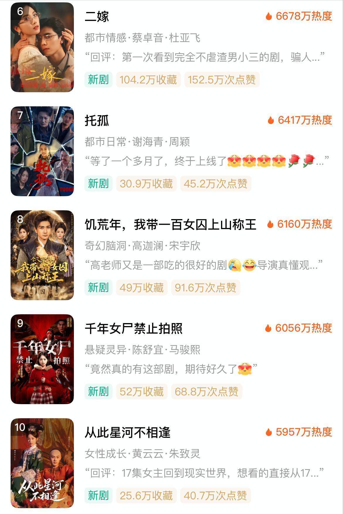 这剧从上线当天的5000多万热度一度高涨到现在的7000多万,只能说各位大黄丫头是真厉害!
